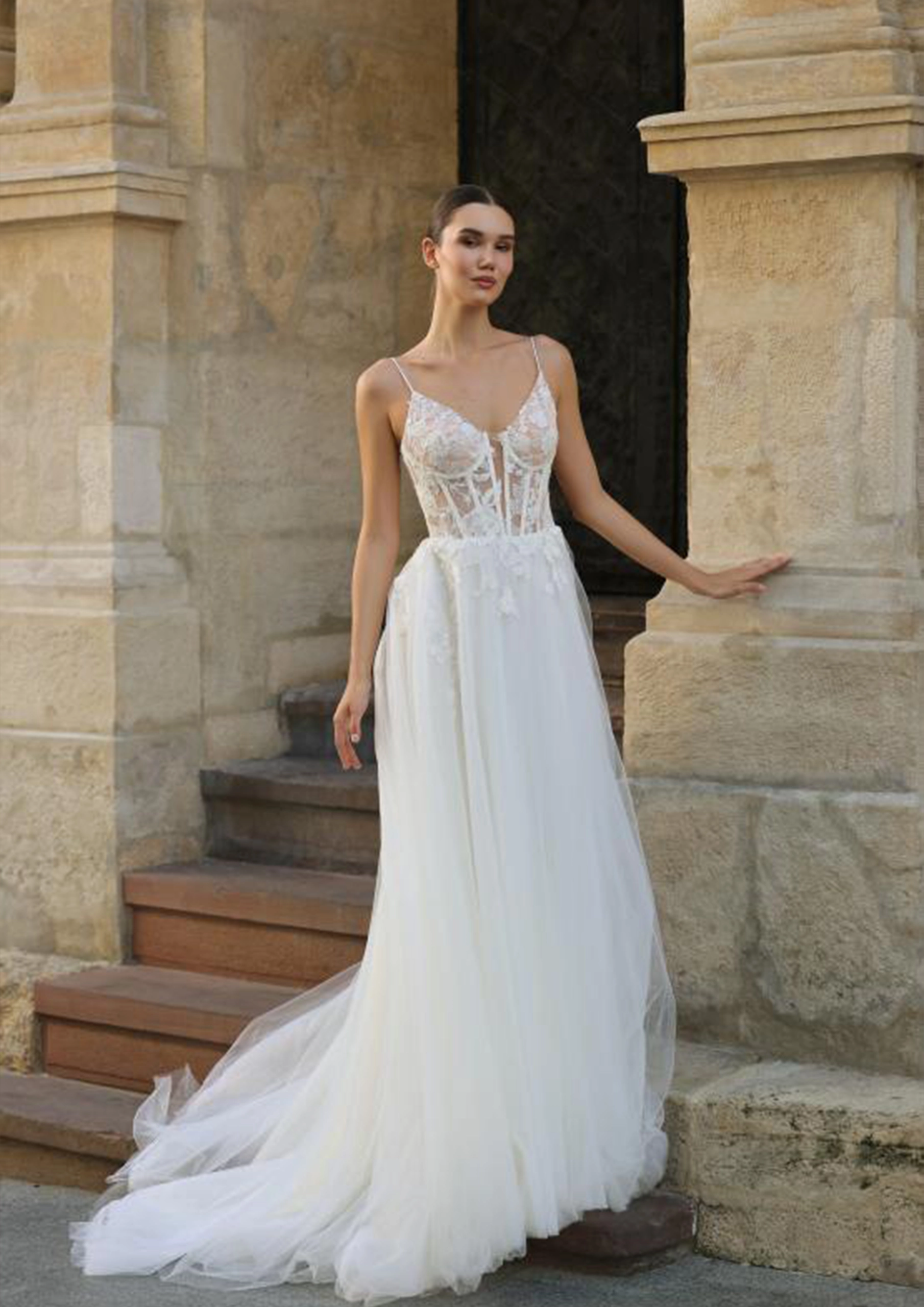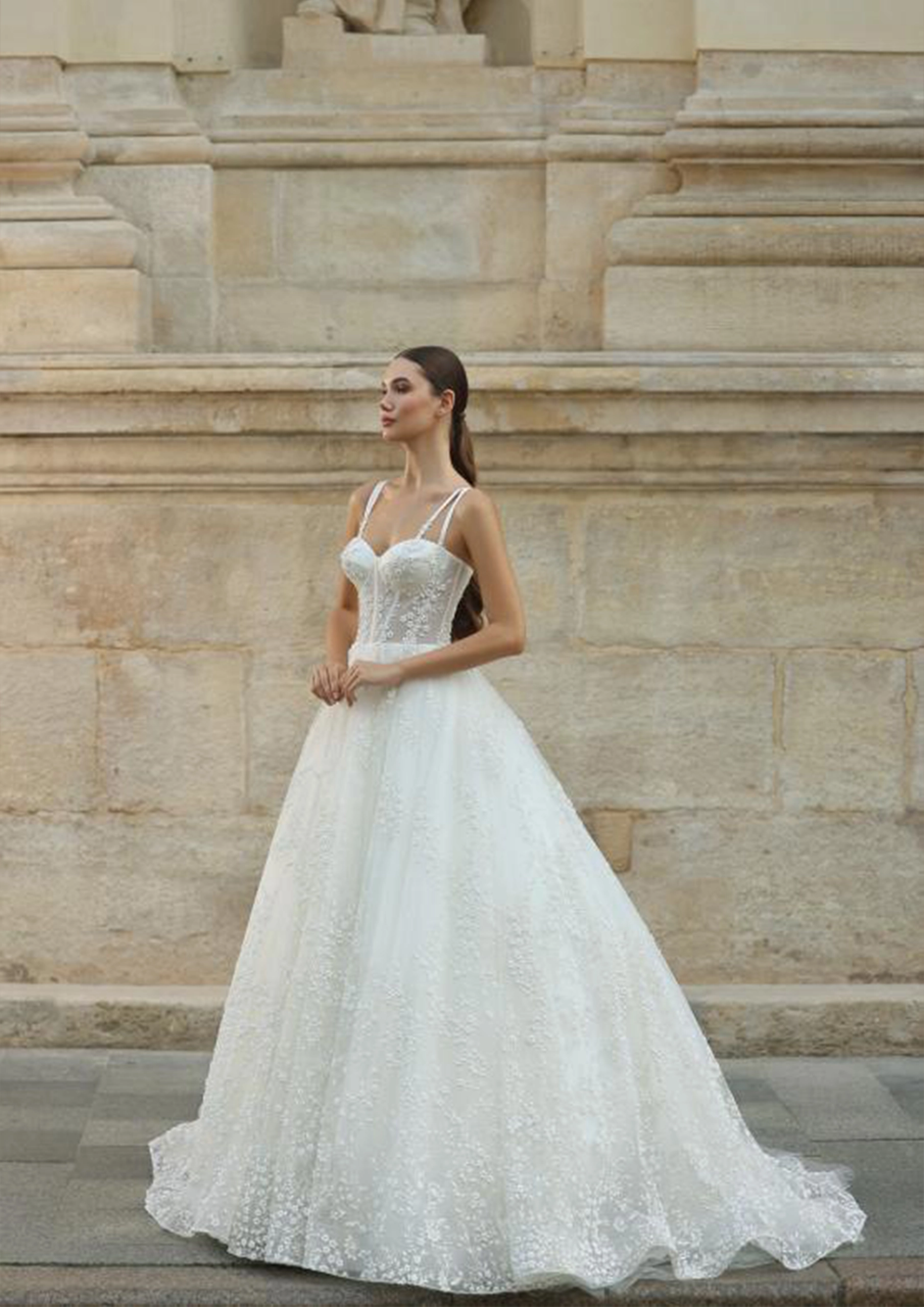 Les créations de Christina bridal se caractérisent par un style toujours glamour et respectueux de la tradition de la mode mariage.