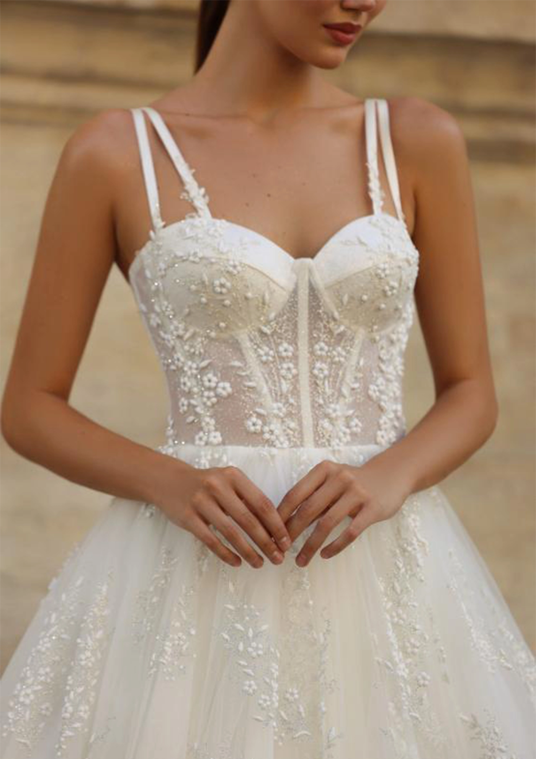De délicates applications « 3D » complètent le bustier.